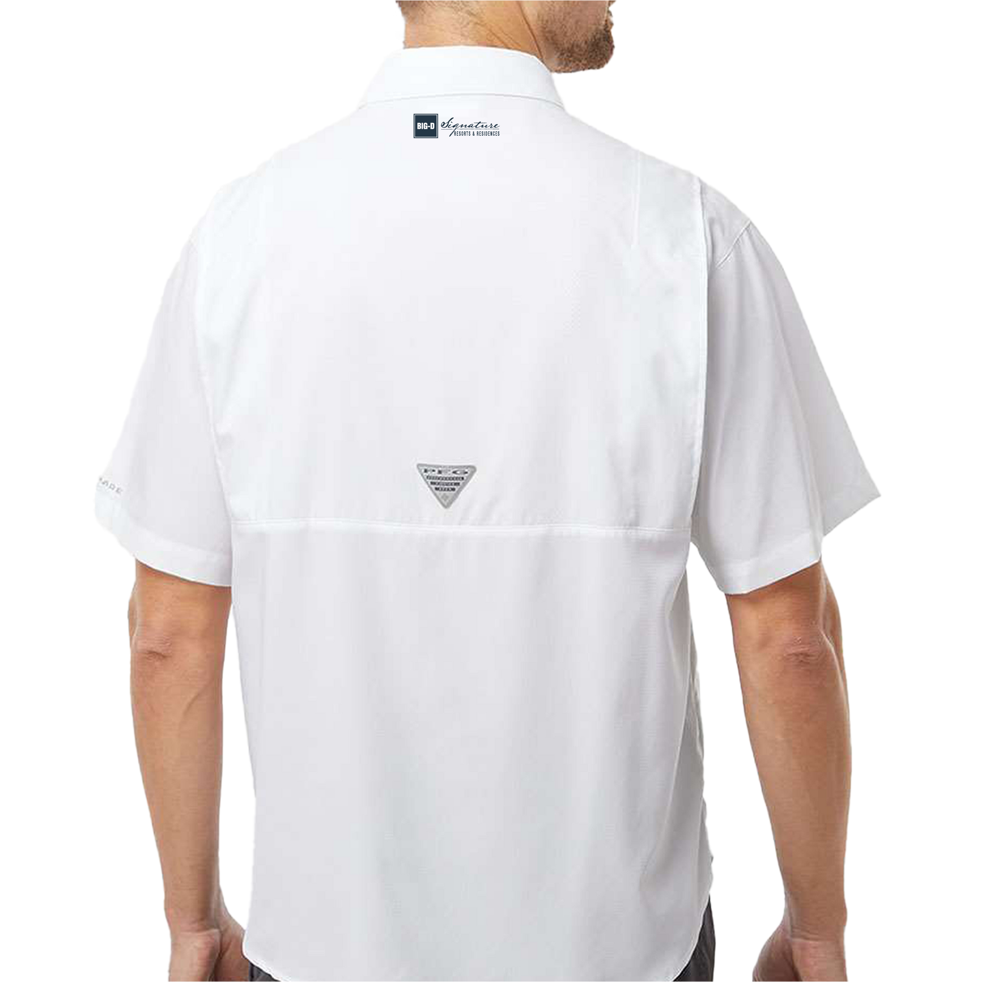- Columbia woven patch logo on left chest